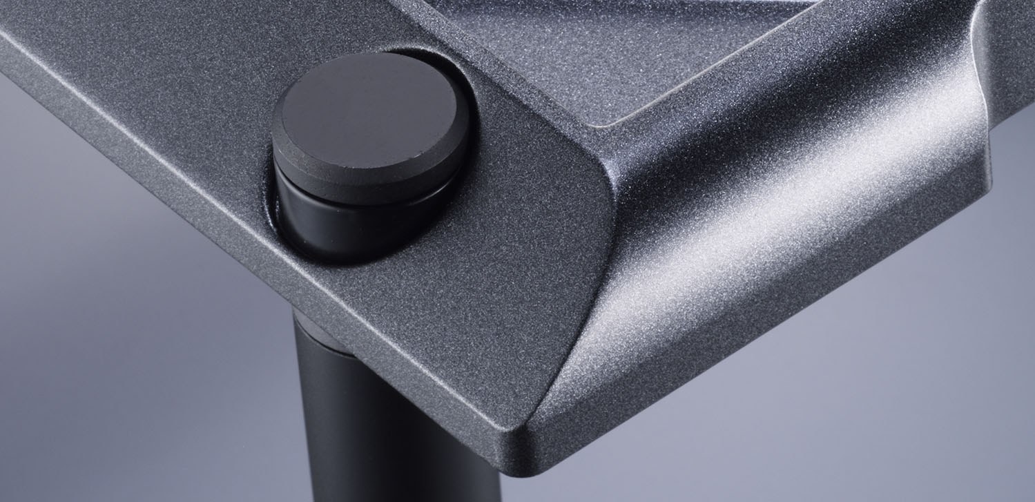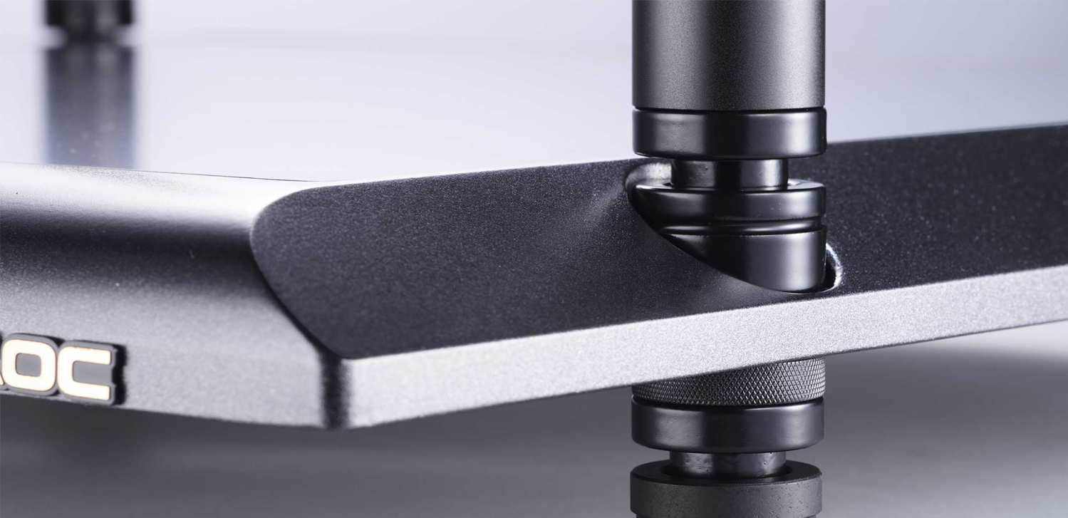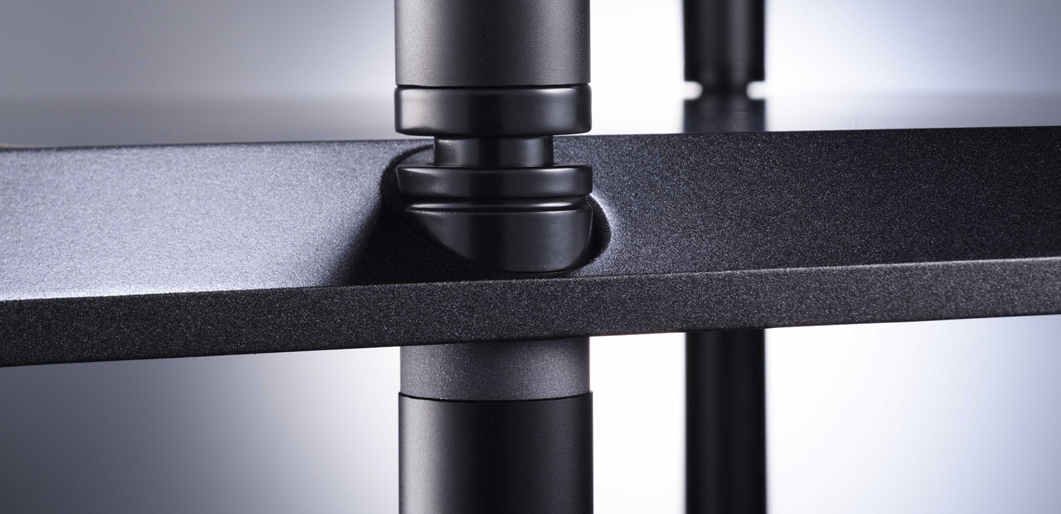 每條支柱與框架之間用上新設計的避震環,每層連接位加入了新研發的鑄鐵製防震套件,以上釘下底碟形式將諧震降低外,能確保震盪不會經支柱傳遞到其它層板。全新柱子結構,加強鞏固性外,更以全圓柱型外觀設計,與機架外型更加襯托。