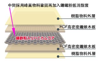 承托層板均採用(高丘)最新的蜂窩式Honey Comb結構設計及引入(內藏鑄鐵粉)專利制震技術。將承托木板分成五層處理,上下層選用高密度合成木材HDF,頂底再貼上堅硬的樹脂層。中間位置放入蜂窩結構承托,然後再灌入鑄鐵粉。當器材的諧震傳遞到層板時,微細的鑄鐵粉粒會產生抖動並且互相磨擦,從而將震盪的動能量轉化成熱能來抵消。這種能量轉換的制震方式是有效和具科學理論。