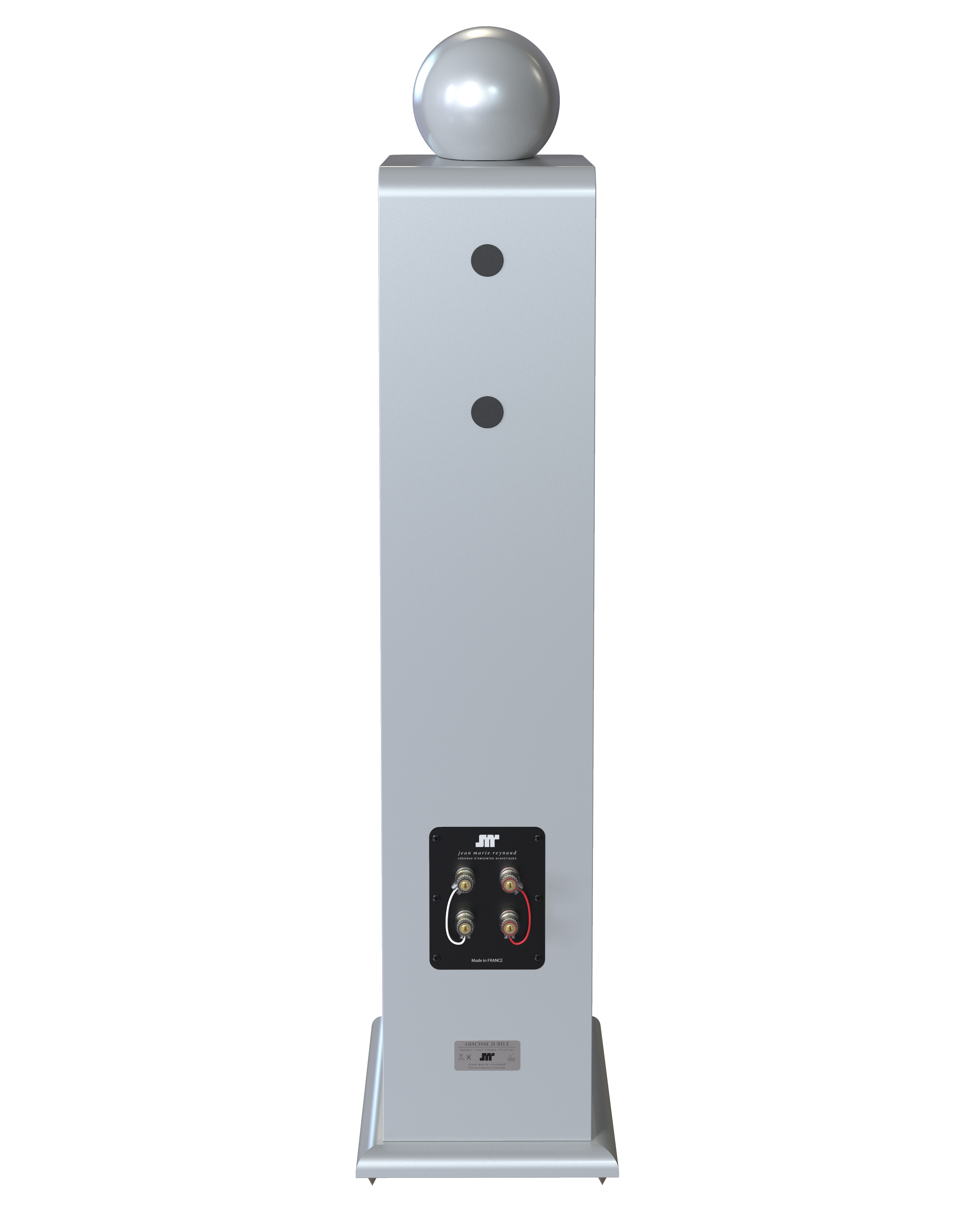 Abscisse Jubile(愛比詩銀禧版),屬JMR重新設計的其中一款座地喇叭。廠方盛傳了上一代的優點,把有關的研究和新技術合成,保留這款音箱的外型和體積特性,讓它表現更近乎真實音樂和現場聽感。設計師通過所有Abscisse的技術計算後,喚起了過往的研發經驗,同時引用最新的科技作兩者融合。設計理念上,JMR以最小巧的座地箱體為基礎,務求達到容易擺放,使揚聲器不經意地融入家居中,令音箱能盡情發揮重播音樂這必要條件。要將小體積聲箱能造出寬闊的頻應和充足的動態,JMR在技術上作出了巧妙的安排。另外,聲箱每個角位亦改為弧形邊角設計,令音箱的聲學效應增強及提供更好的伸延性。分頻設計上,保持原有的2.5路分音三單元概念,分頻電路再作多翻改良,令喇叭有更高效率和更線性的阻值負載,比之前更容易驅動。