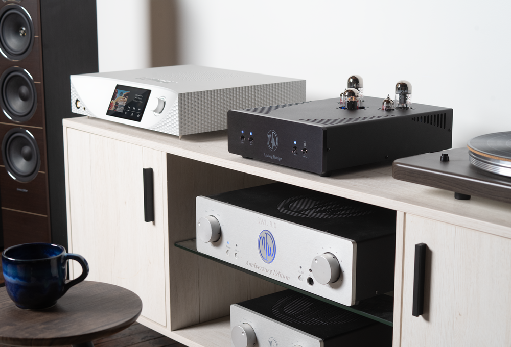 不少以數碼產品作為音源的發燒友都會覺得聲音稍為生硬和乾澀,尤其是擴音機是晶體管式放大,加上喇叭的速度又快,會失去模擬音色的那種柔和舒適感。Modwright為此開發出Analog Bridge膽緩衝放大器,這款特別機種來解決此問題。