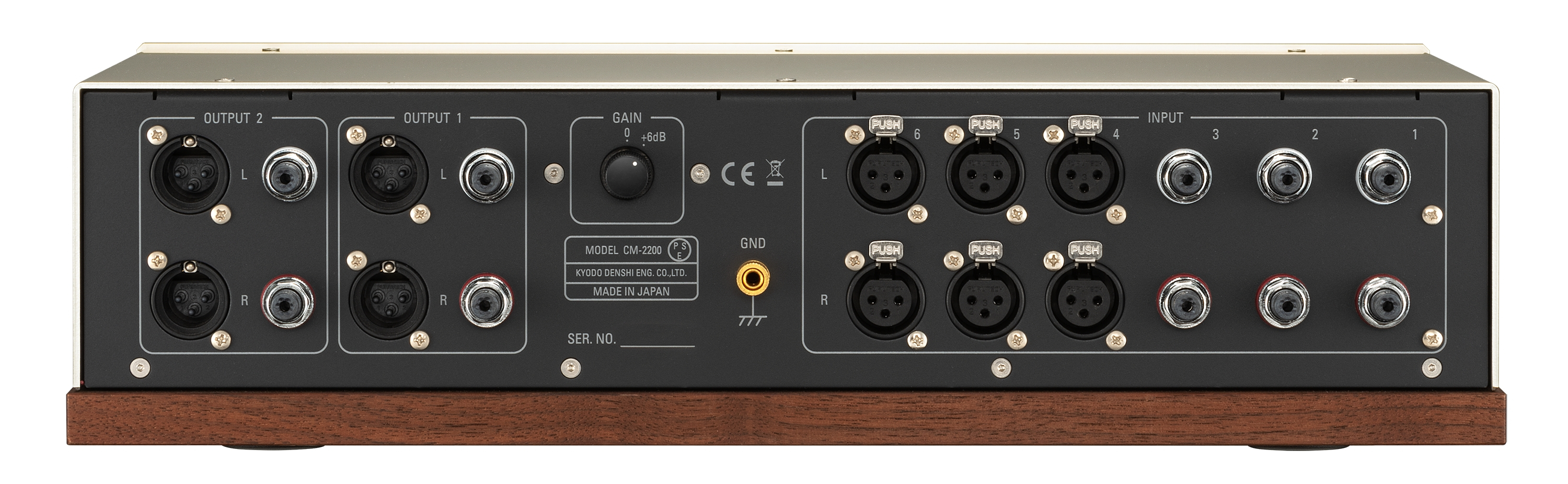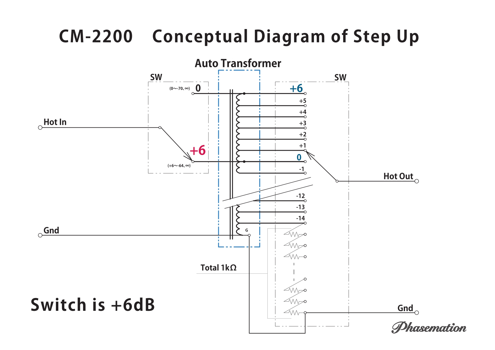 要實現最好的無源方式在前級上,在傳訊的距離及阻值的變化等情況下,會令微弱的音源訊號電平進一步降低而影響動態,加上有些音源輸出過低,或者輸出阻值過大,會使後級放大工作大為吃力,導致匹配失衡。要在無源的情況下解決此問題,新一代的CM-2200,特別內置兩組變壓器以維持輸入訊號電平之餘,更首次以升壓方式,令前級能提供6dB的增益,讓音量衰減器可獲得 (0dB至-70dB)或 (+6dB至-64dB)兩種音量衰減段值選擇。