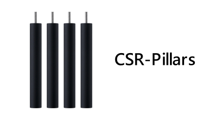 CSR音響承托架支柱採用含有鑄鐵粉的鋼管設計,令到外來及器材之震動不會互相傳送。CSR音響承托架之底部除設有大型可調鑄鐵釘腳外,新設計U型鑄鐵底墊,將釘腳收藏不外露,令全新CSR音響承托架成為家中的優美家具。