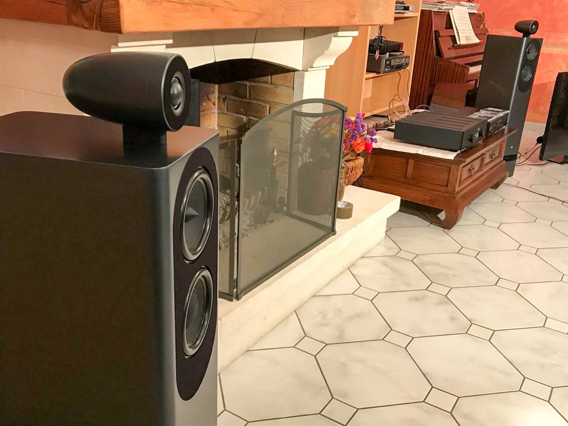 高音單元是1吋直徑半球形絲絨震膜,以非磁液結構及採用兩個後箱室設計,及擁有極高阻尼特性設計關係,令單元能換來更高的承受能力,響應頻率滾降可達至700Hz。 加上裝嵌在前號角式的鋁材質外圍,以全櫸木造的子彈形聲箱等處理,令喇叭的高頻在3kHz - 25kHz範圍下的失真率只有0.05%。