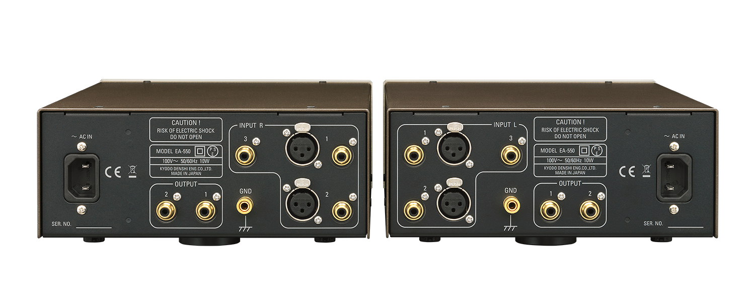EA-550採用與EA-1000唱放概念一樣,以完全單聲道設計,把左/右聲道線路板,零件及電源分別裝嵌於獨立兩個對稱的機箱內。機箱鋁面板為10mm厚,而機身是1.6mm厚度的鍍銅鋼製成,作用是加強抗磁能力和提高剛性,也是聲音分隔度最好的基礎設計條件。MC前端放大部份是採用全新設計的左/右獨立升壓牛,火牛以PC-Triple C這種極高規格的純銅繞製成。