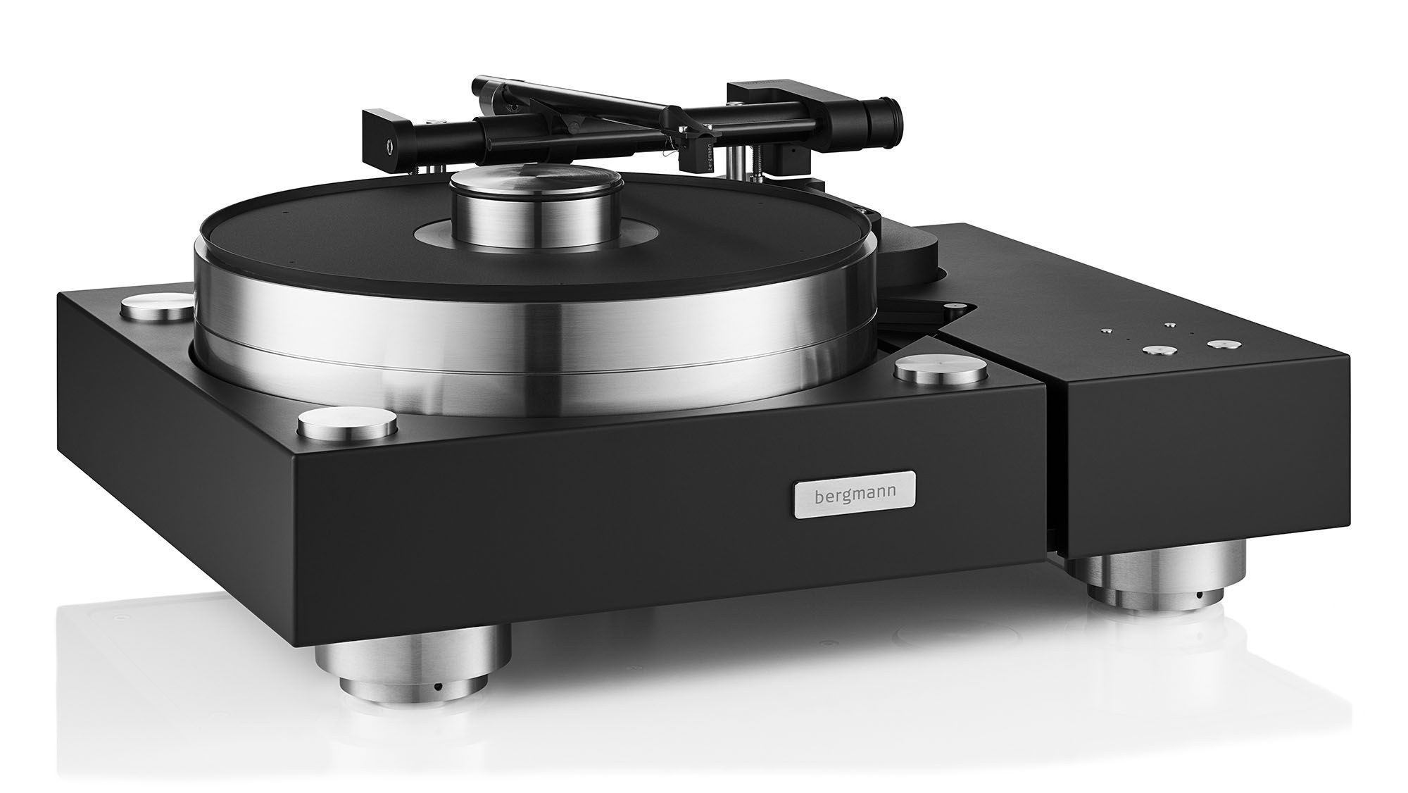 由於Galder是Bergmann頂班黑膠唱盤,所以設計成可安裝四支唱臂,無論是直線循跡,亦或9至12吋長的徑向軸承式唱臂,Galder都可符合不同臂廠的幾何要求,讓用家可同時擁有不同唱臂和唱頭組合出來的多樣化音色。