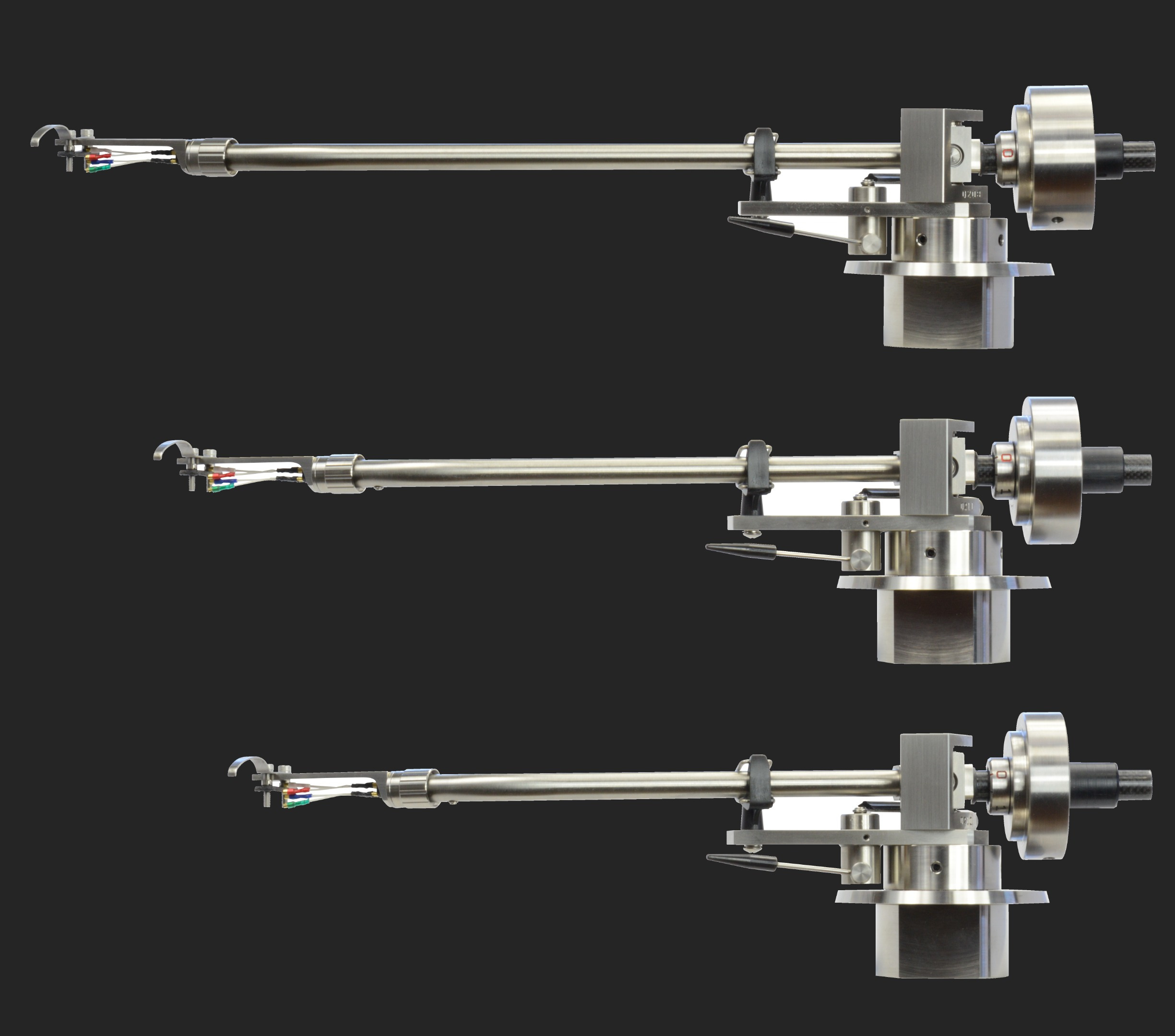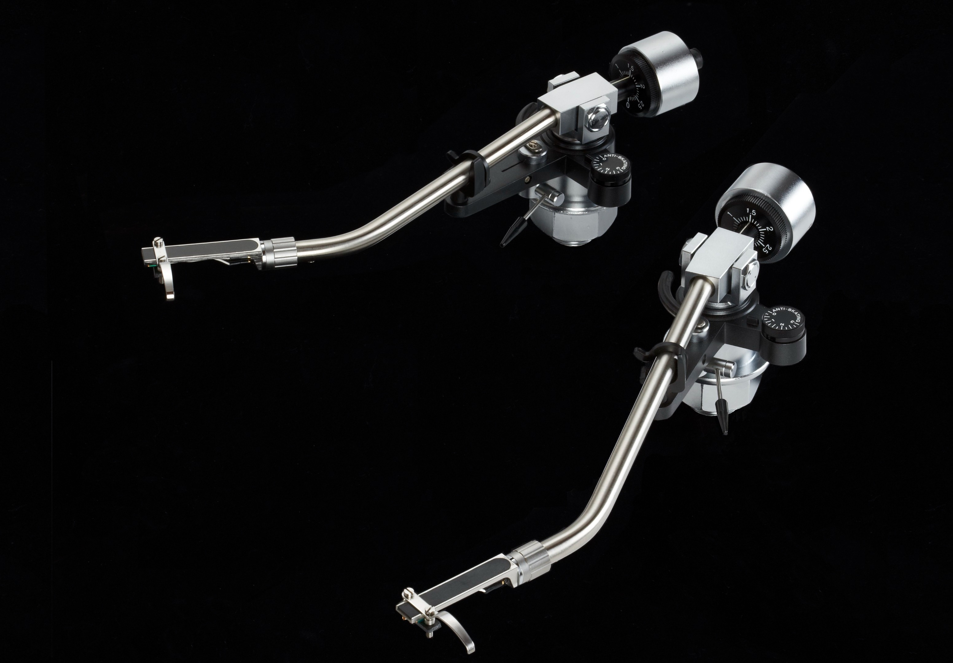 Glanz所有唱臂都選用的Stainless Steel 304這種弱磁性不鏽鋼,這種鋼材絕對有足夠硬度和伸延性這兩種特徵,所以諧震的傳導會更一致性,即是只從臂管頭端走到管尾,不容易積聚於某一範圍而再衍生複震。但當不鏽鋼的型態是太輕或太薄時,就會適得其反。而製造唱臂的金屬卻必須要符合這兩大要求,儘管是鋼製臂管也必須要加入阻尼物料,尤其是在接觸點位置。所以Glanz的唱臂都會由唱殼開始,到整支臂管,再到平衡砣的承軸位,以水平對向方式排列來製作其阻尼層。