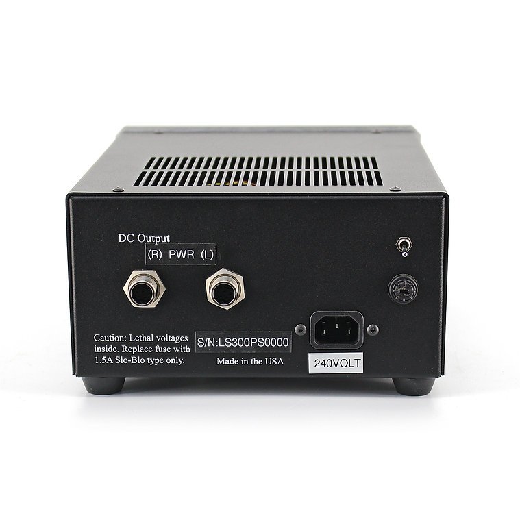 由於線路經過改良,兩支整流膽安裝到主機箱內,獨立供電箱PS 300體積也變得較為小巧,擺放器材空間不足的用家可以減少一點煩惱。供電箱背後有左/右兩個umbillical電源線接端ModWright提供兩條原廠Turth umbillcal電源接線,給左/右聲道獨立供電。主機背面L電源接端旁邊,設有一個GND撥掣,給用家使用XLR平衡或RCA單端訊號線輸出時作接地用,令接地噪頻得以降低。