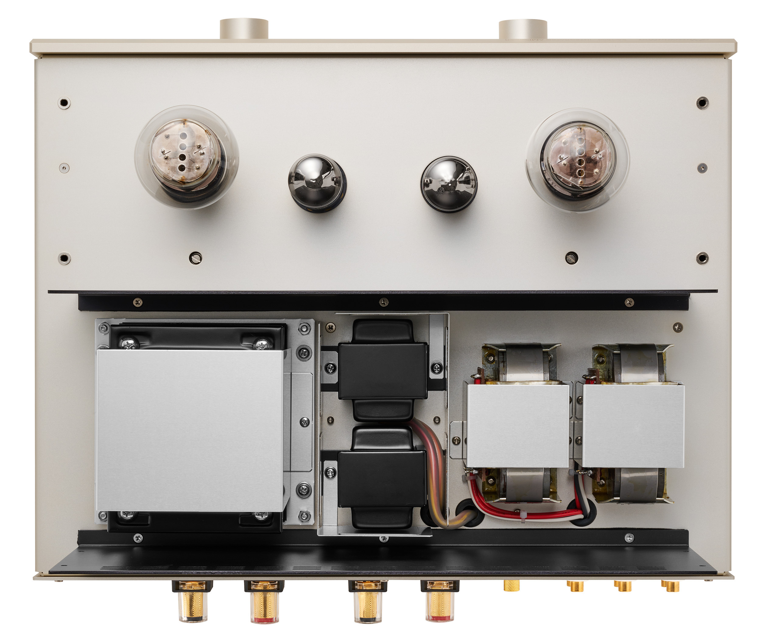 眾所周知,膽機「好聲」關鍵在乎於變壓器的質量,因此廠方特意嚴選了瑞典Lundahl出品作為輸出牛,而且是每聲道採用一隻作獨立處理,確保合併機能在4至8Ω的喇叭負載下,擁有穩定的輸出。供電部份,左/右聲道備有獨立的厄流圈擔任整流工作,配合ROHM高速開關式二極管,令音樂訊號從高至低頻,無差別地完全放大。此外,重量級的電源火牛更採用了獨立的懸掛裝置設計,有效抑制火牛自身的諧震,大大減低機殼產生噪頻的影響。