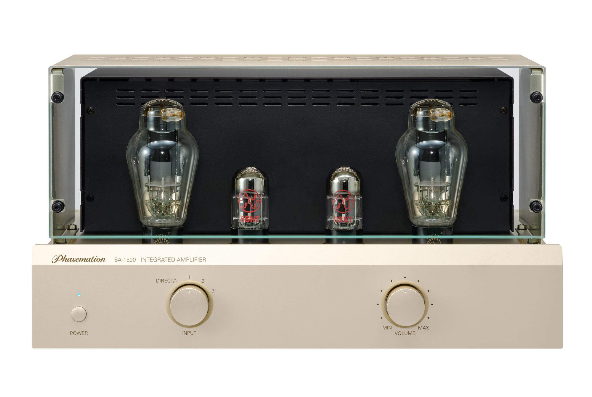 SA-1500設有三組輸入,而輸入1更可選擇為直入後級,方便用家連接獨立前級使用。純A類每聲道9W輸出,與及精美的強化玻璃面罩外飾,讓SA-1500膽合併機成為Phasemation又一極巨代表性的產品;這種簡潔而又製作精美的設計,既能滿足膽機發燒友要求,同時也屬於喜愛音樂追隨著的最佳選擇。