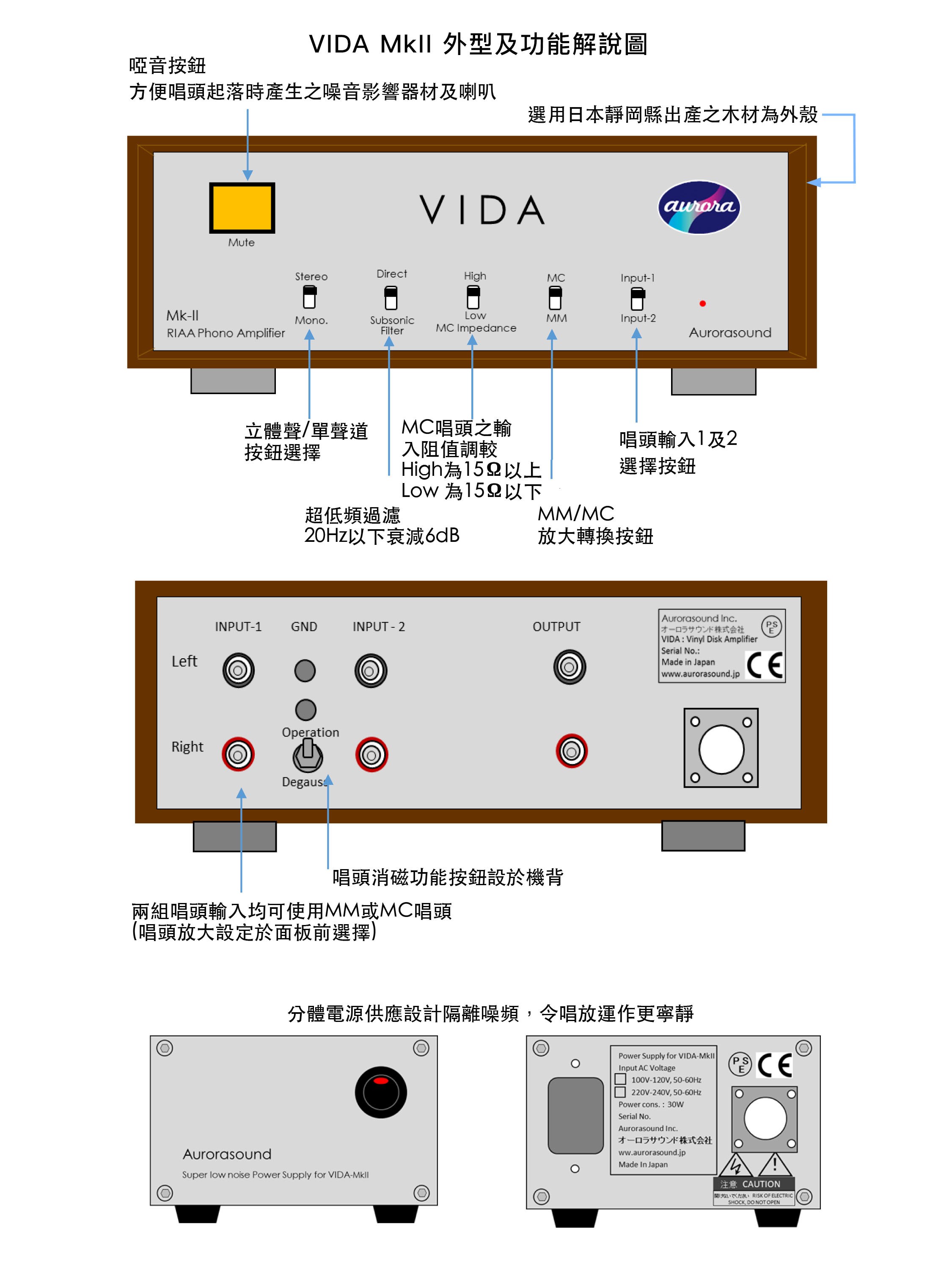 VIDA 唱放是Aurorasound主持人「唐木志延夫」的創業第一件作品,也是「曙光」品牌最具代表性的產品,推出至今,不經不覺地已10年多,所以今次研發第二代,對唐木先生確實是一大挑戰。他認為VIDA那種簡潔而又實用的外型,加上那種傳統日本音響的嵌入式木殼和高級唱放必備的分體電源設計,已成為他自家品牌產品的標記,而且也獲取大部份市場所接受。因此,今次的改良,主要是投放在聲音和電路技術上的改良到為首要。